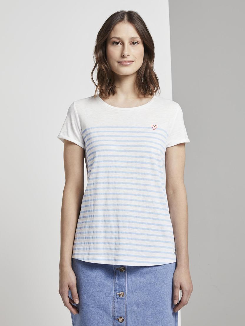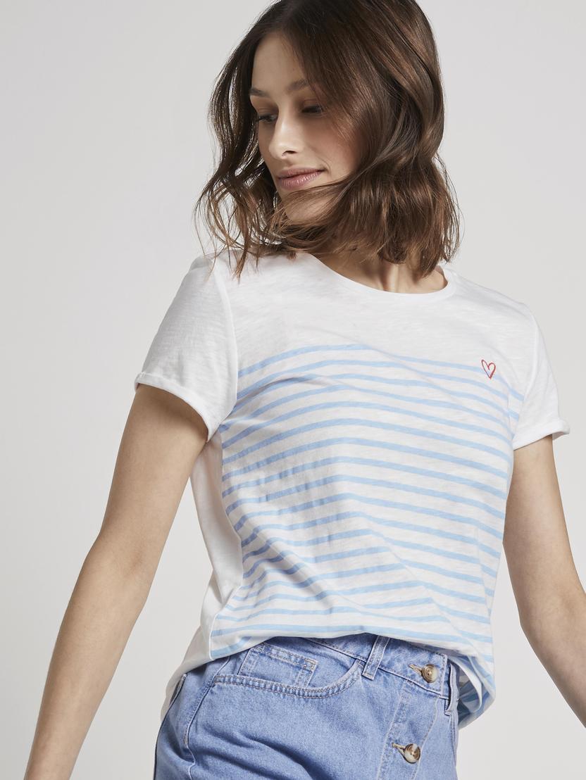 TOM TAILOR DENIM Damen T Shirt printed stripe slub tee T-Shirt 1/2
